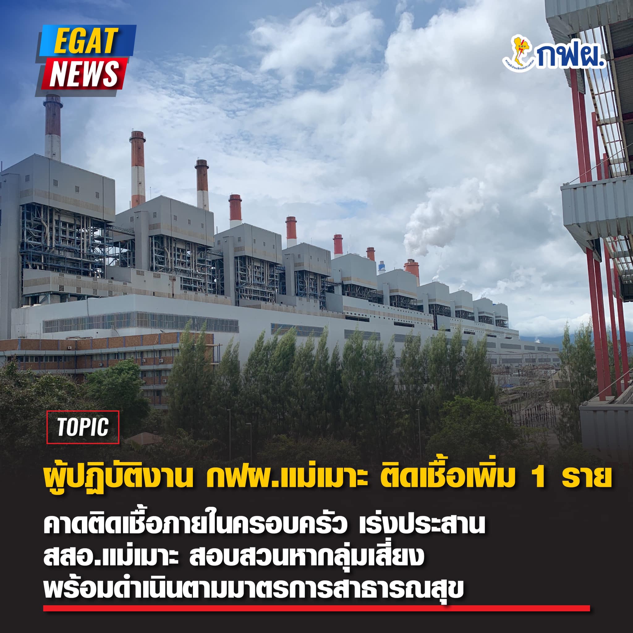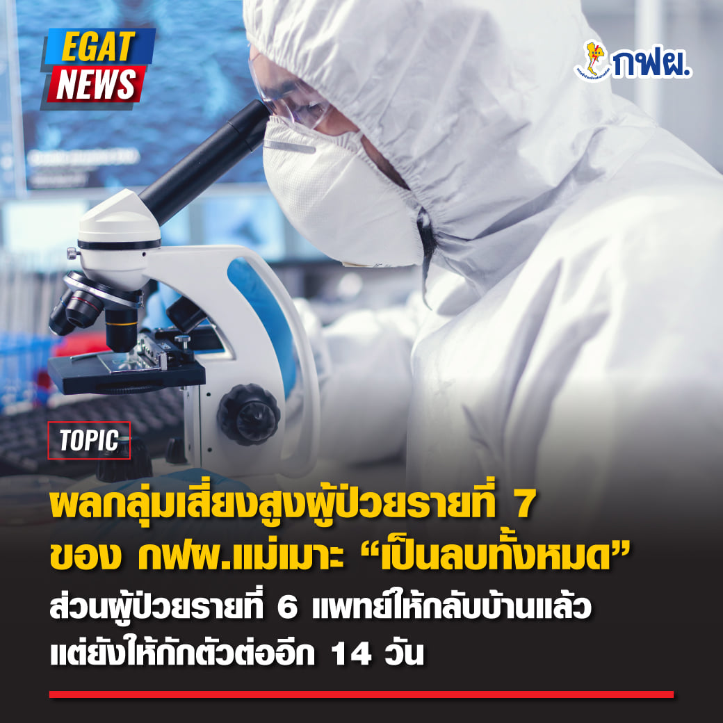 ผู้สัมผัสเสี่ยงสูงผู้ป่วยยืนยันติดเชื้อรายที่ 7 ของ กฟผ.แม่เมาะ เป็นลบทั้งหมด