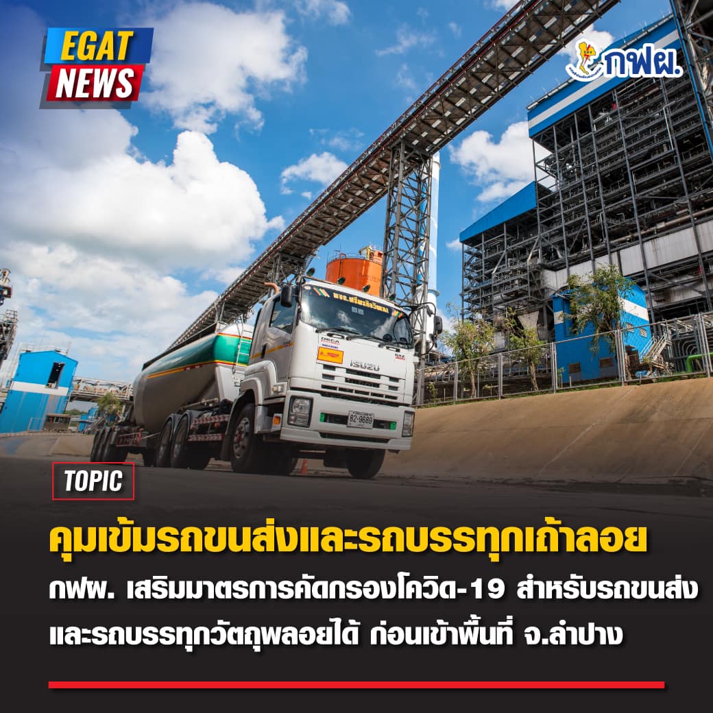 กฟผ.เสริมมาตรการคัดกรองโควิด-19 สำหรับรถขนส่งและรถบรรทุกวัตถุพลอยได้ ก่อนเข้าพื้นที่ จ.ลำปาง 🚛🚚🏭