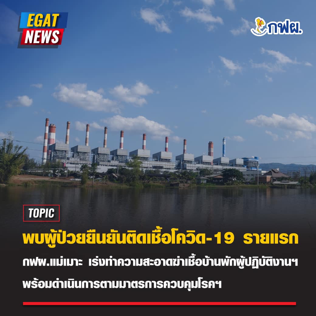 กฟผ.แม่เมาะ พบผู้ป่วยยืนยันติดเชื้อโควิด-19 รายแรก เร่งทำความสะอาดบ้านพักผู้ปฏิบัติงานฯ พร้อมดำเนินการตามมาตรการควบคุมโรคอย่างเคร่งครัด 🏭
