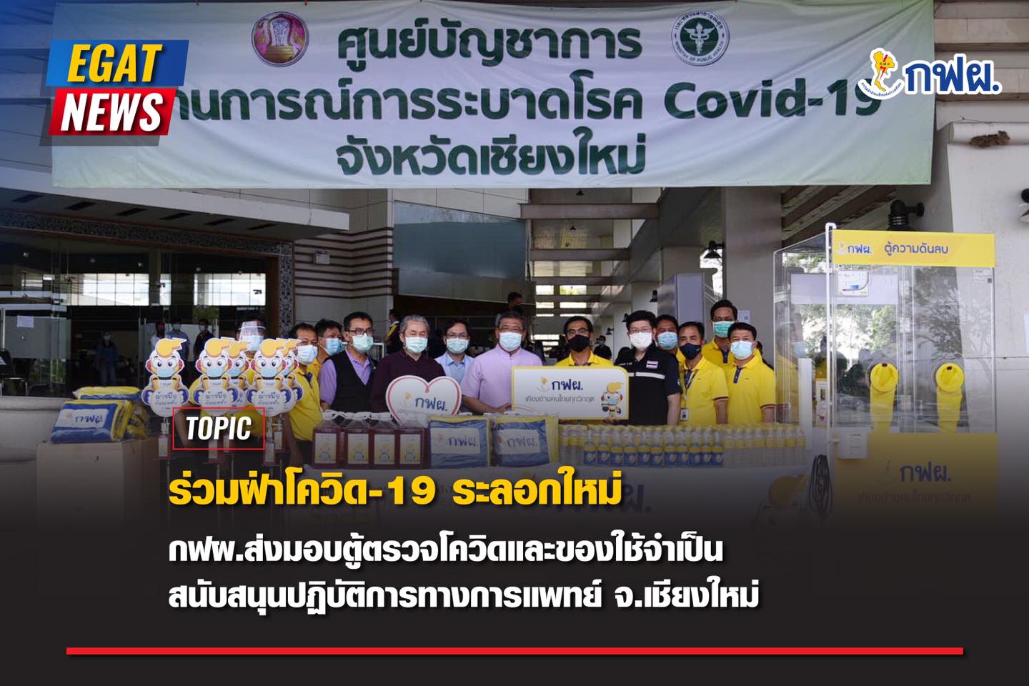 กฟผ.เคียงข้างคนไทยฝ่าโควิด-19 ระลอกใหม่ ส่งมอบตู้ตรวจโควิดและของใช้จำเป็นสนับสนุนปฏิบัติการทางการแพทย์ จ.เชียงใหม่ 🧑🏻⚕️💪💛