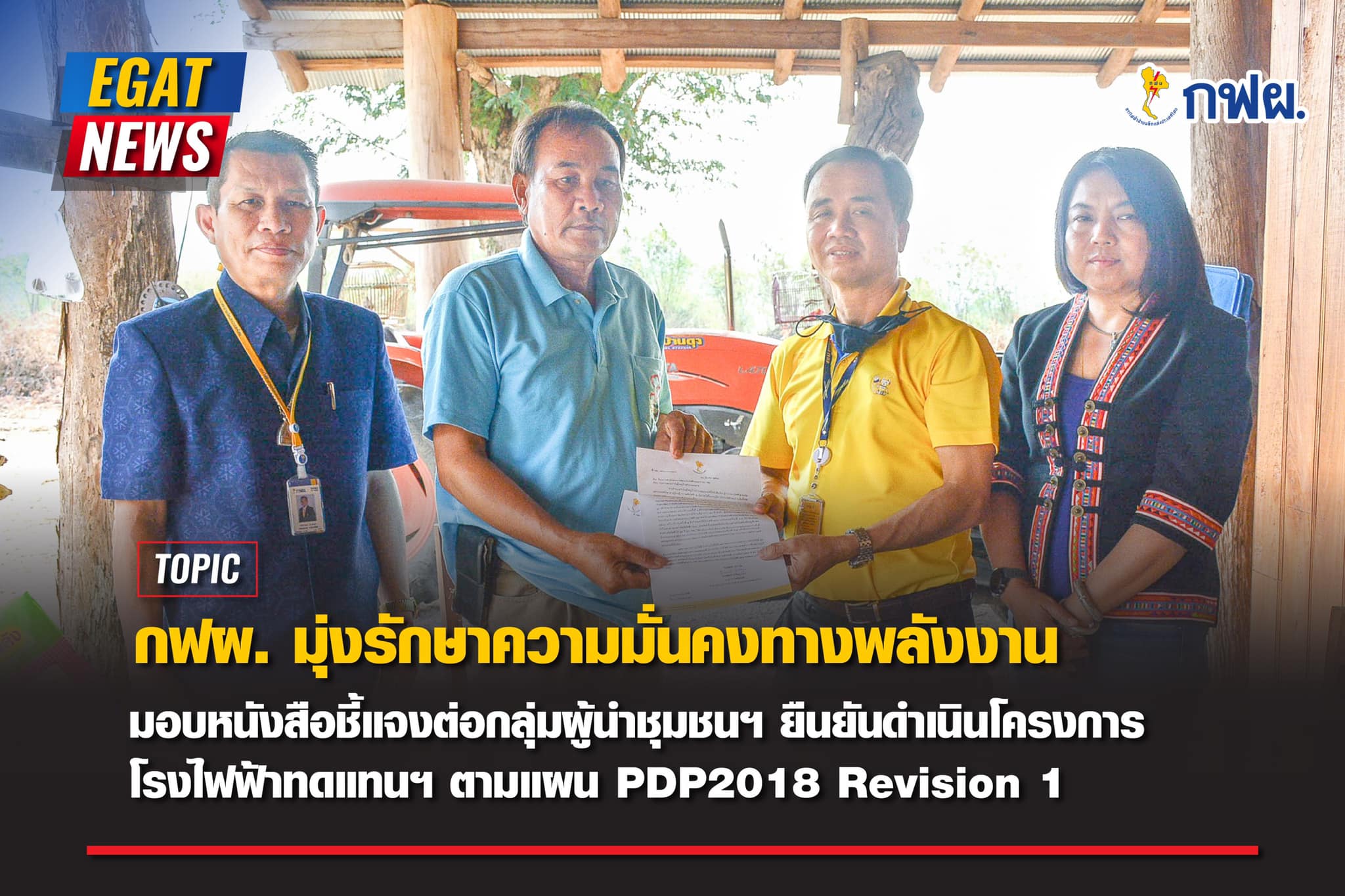 กฟผ.แม่เมาะ มอบหนังสือชี้แจงต่อกลุ่มผู้นำชุมชน และผู้แทนภาคประชาชน อ.แม่เมาะ ยืนยัน กฟผ. เน้นความมั่นคงทางพลังงานเป็นหลัก