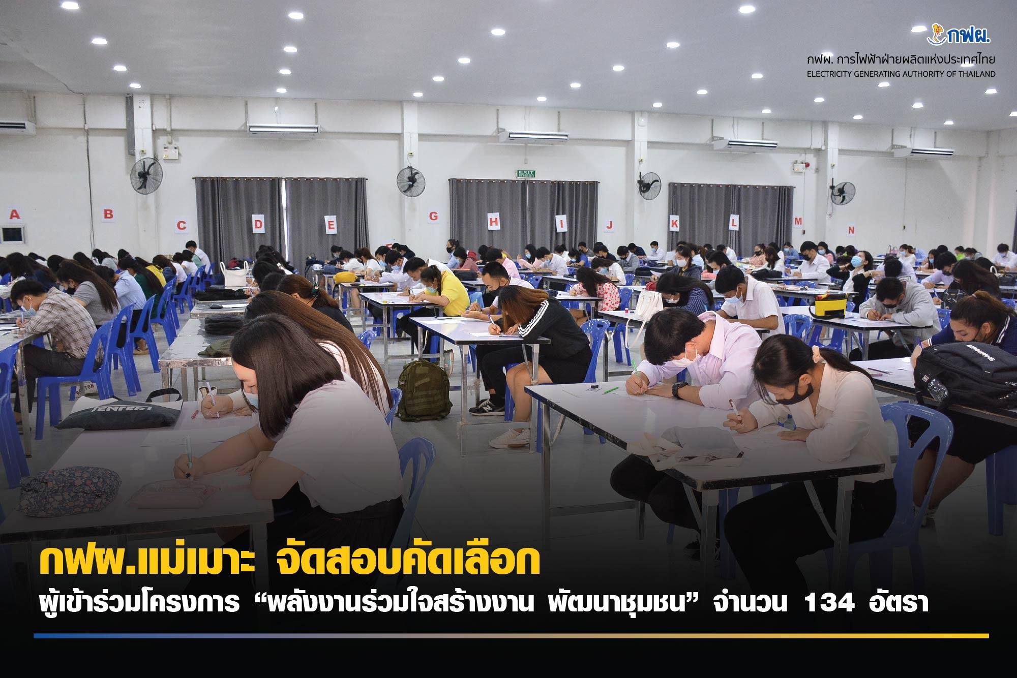 กฟผ.แม่เมาะ จัดสอบคัดเลือก ผู้เข้าร่วมโครงการ “พลังงานร่วมใจสร้างงาน พัฒนาชุมชน” จำนวน 134 อัตรา 🙍♀️🙍♂️