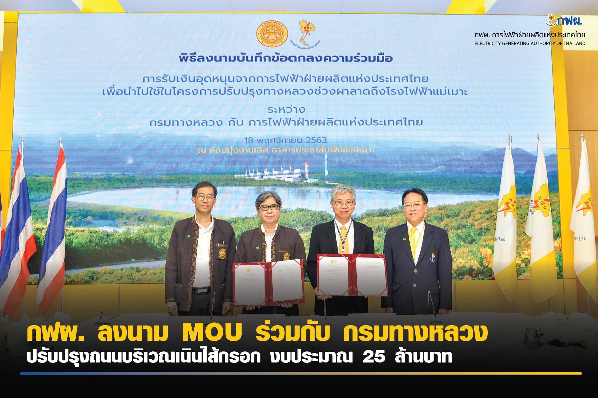 กฟผ. ลงนาม MOU ร่วมกับ กรมทางหลวง ปรับปรุงถนนบริเวณเนินไส้กรอก งบประมาณ 25 ล้านบาท 🚧🚗