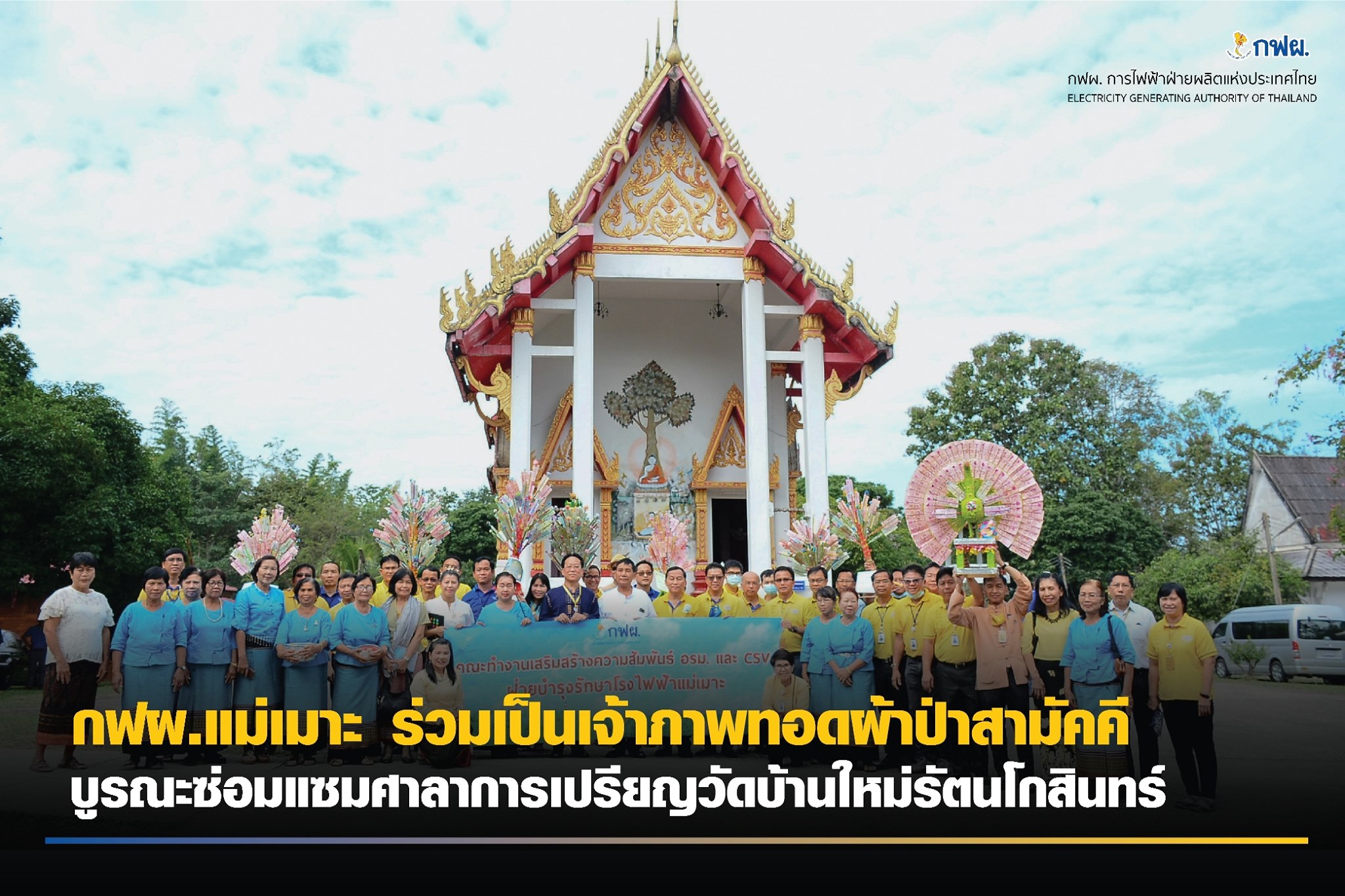 กฟผ.แม่เมาะ ร่วมเป็นเจ้าภาพผ้าป่าสามัคคี บูรณะซ่อมแซม ศาลาการเปรียญวัดบ้านใหม่รัตนโกสินทร์ 💛
