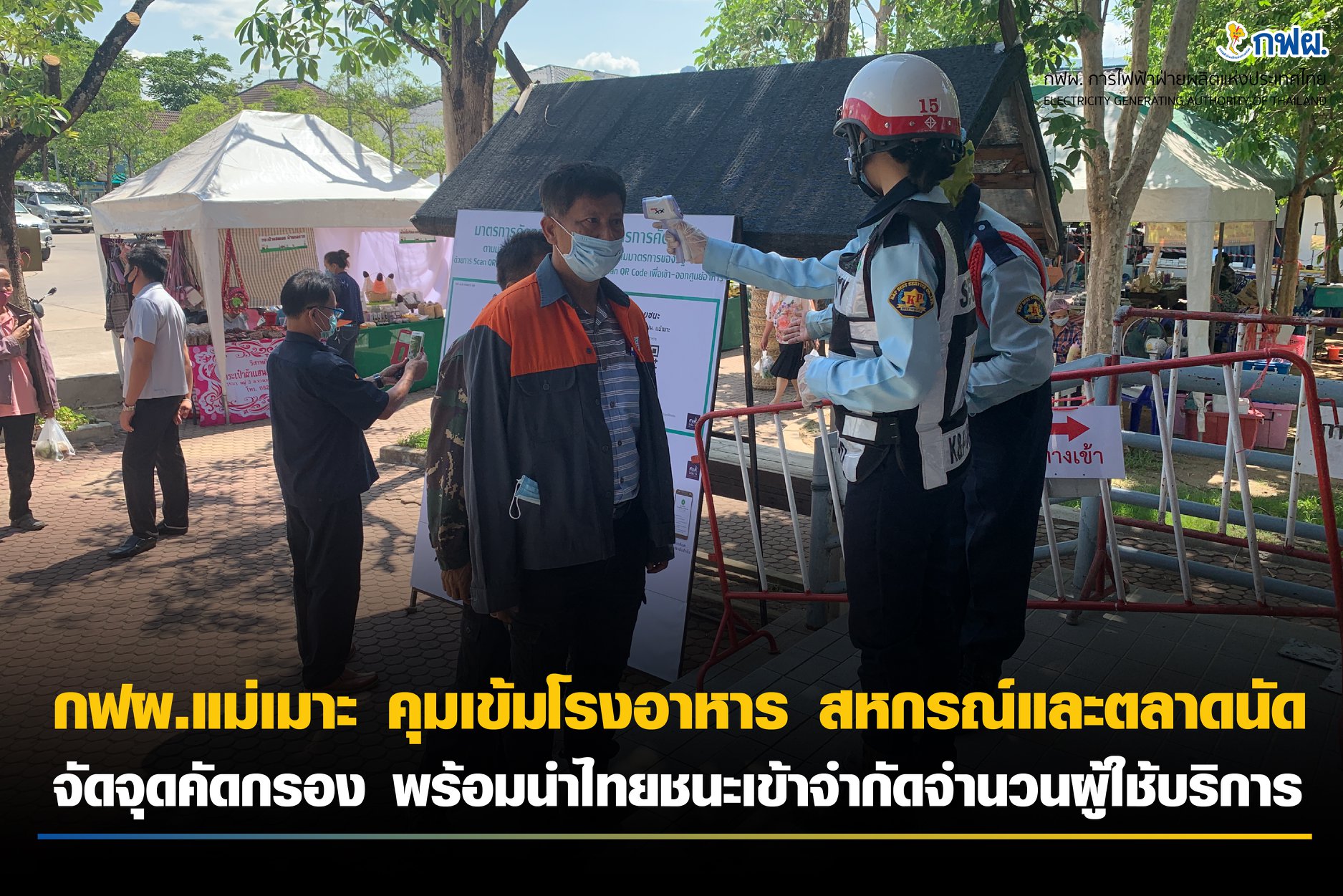 กฟผ.แม่เมาะ คุมเข้มมาตรการคัดกรองการเข้าใช้โรงอาหาร และกรีนมาร์เกต ในช่วงการผ่อนปรนมาตรการโควิด-19 จากรัฐบาล 🏠