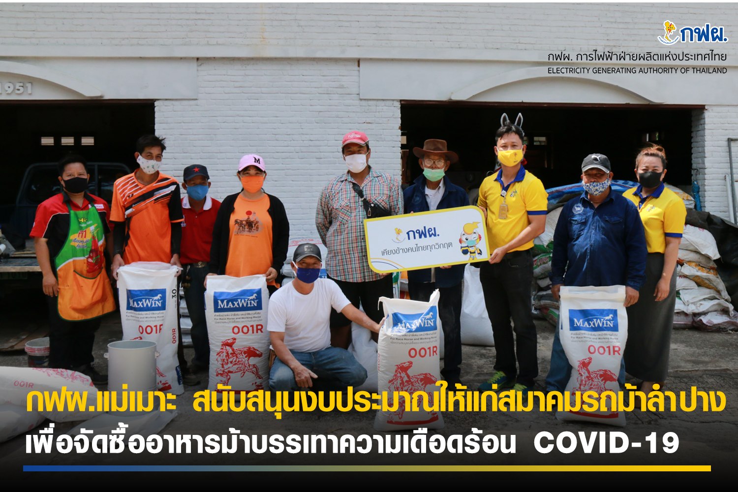 กฟผ.แม่เมาะ สนับสนุนงบประมาณให้แก่สมาคมรถม้าลำปาง เพื่อจัดซื้ออาหารม้าบรรเทาความเดือดร้อน COVID-19