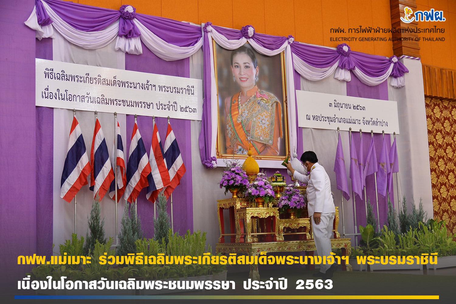 กฟผ.แม่เมาะ ร่วมพิธีเนื่องในวันเฉลิมพระชนมพรรษา สมเด็จพระนางเจ้าฯ พระบรมราชินี 3 มิถุนายน 2563 🙏