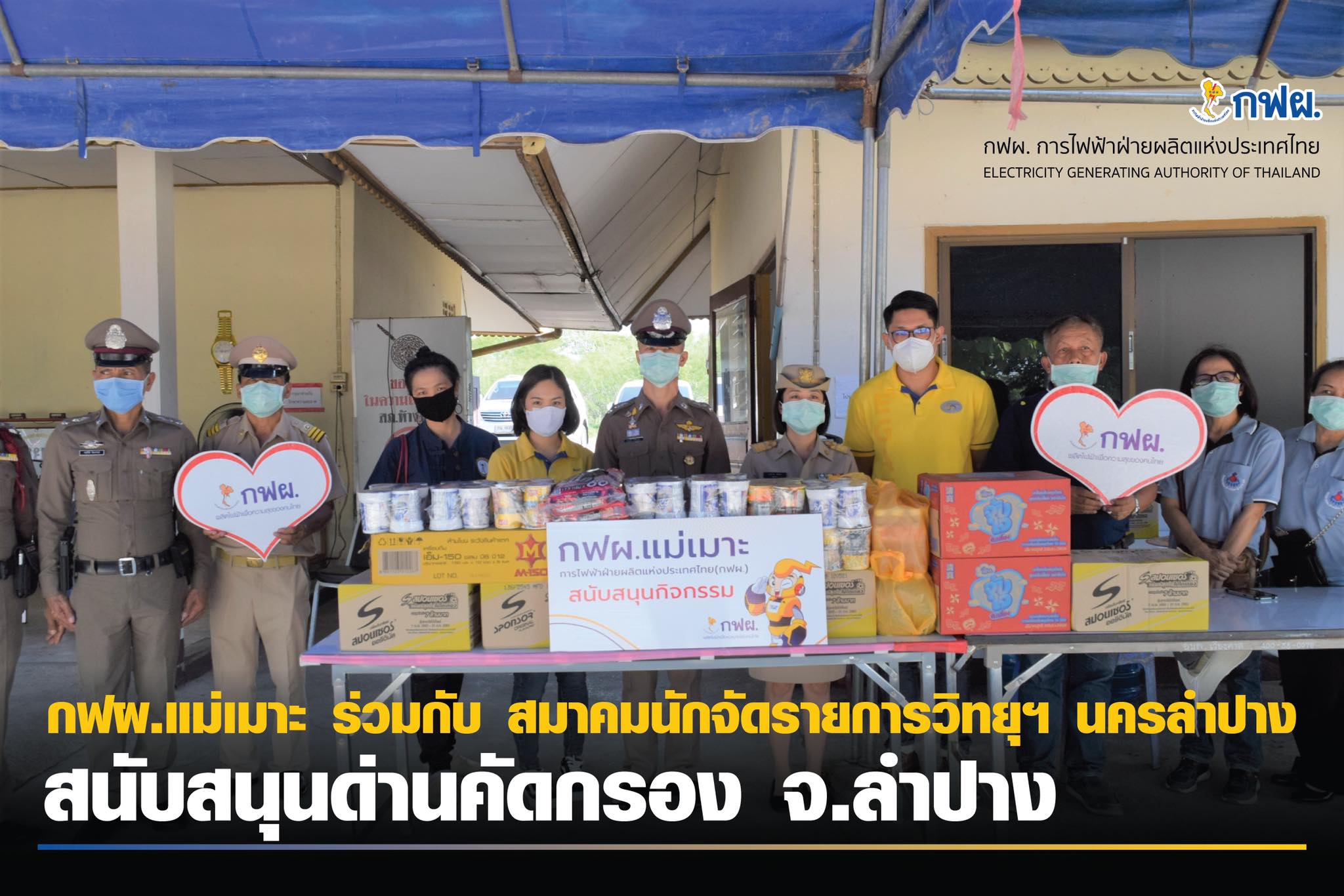 กฟผ.แม่เมาะ ร่วมกับสมาคมนักจัดรายการวิทยุกระจายเสียงนครลำปาง มอบเครื่องบริโภคแก่ด่านตรวจคัดกรองโควิด-19 ใน จ.ลำปาง 👨✈️🧑✈️